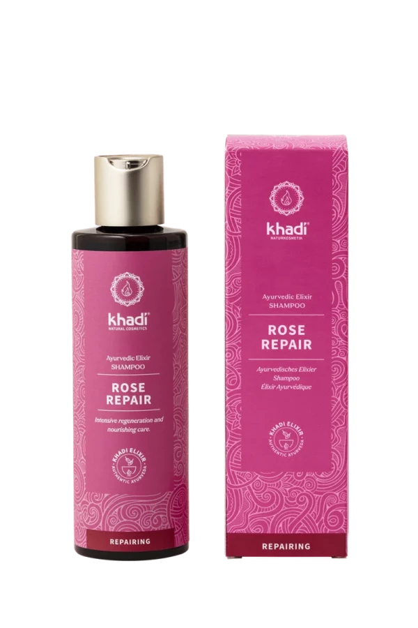 Le shampooing Rose Repair offre un véritable soin aux cheveux fragilisés et abîmés. Sa formulation à base d’élixir ayurvédique d’herbes cueillies à la main en synergie avec la rose hydrate intensément et régénère durablement les cheveux. Il les nettoie en douceur grâce à des tensioactifs naturels sans sulfate et redonne aux cheveux non seulement de la brillance, mais également de l’élasticité.